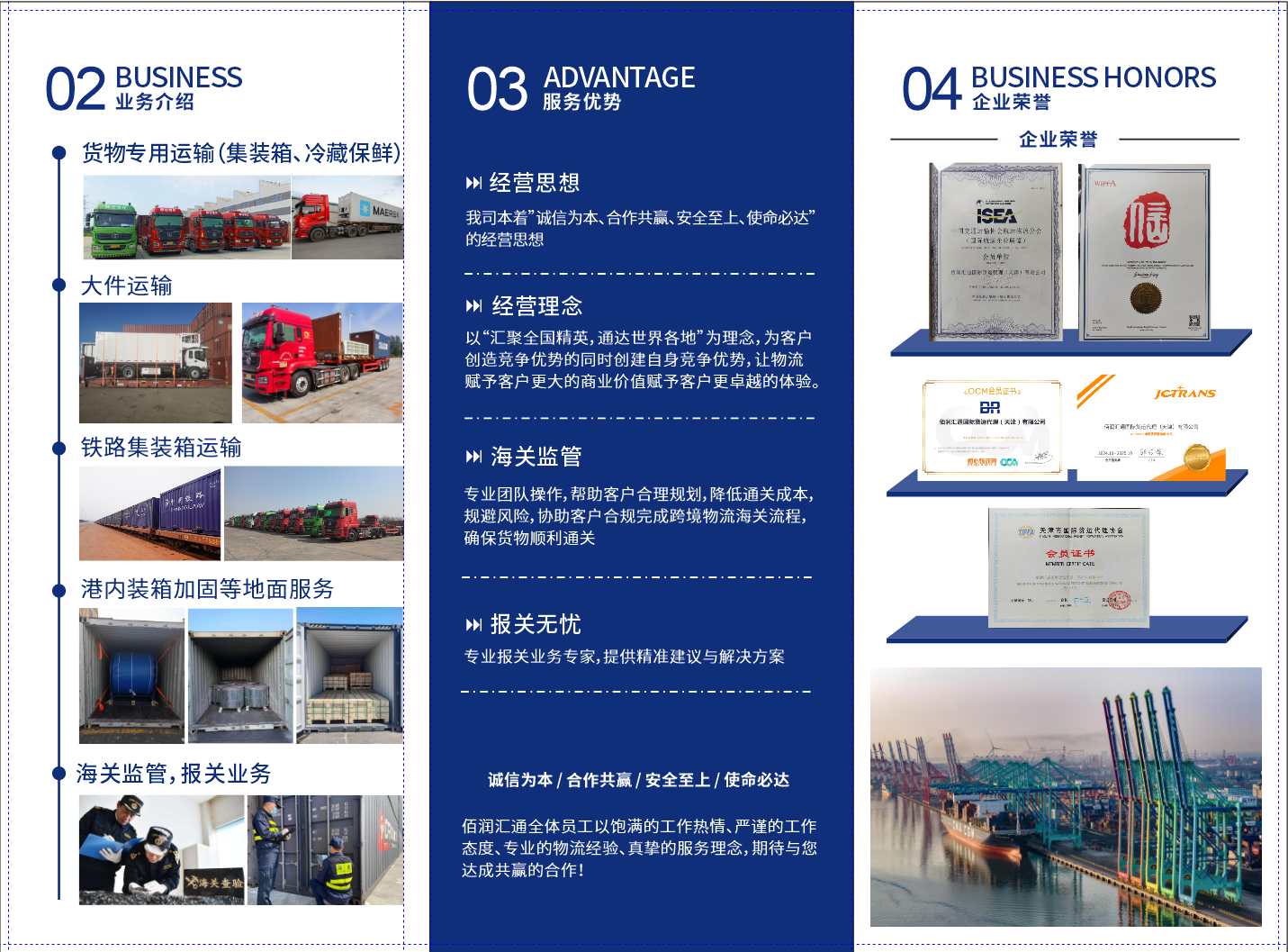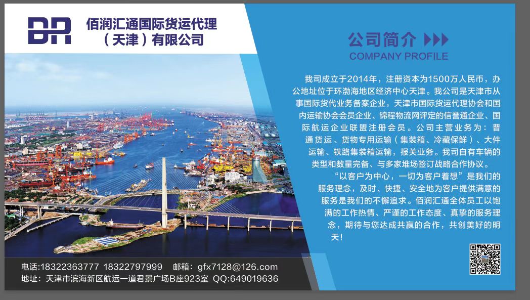 是天津市国际货代业务备案企业,并荣获锦程物流网信誉通企业称号,同时身为天津市国际货运代理协会、国内运输协会及国际航运企业联盟的注册会员企业。