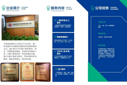 主营业务:一般贸易报关、FBA跨境电商报关、ATA报关、加工贸易报关、买单报关、进口清关,公司配套拖车运输,商检,产地证等各类服务。