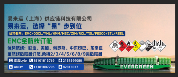 合作船东:EMC、ZIM、HMM、RCL、YML、CUL、OOCL、TSL、MSC、CNC、FESCO、SLG、SLS