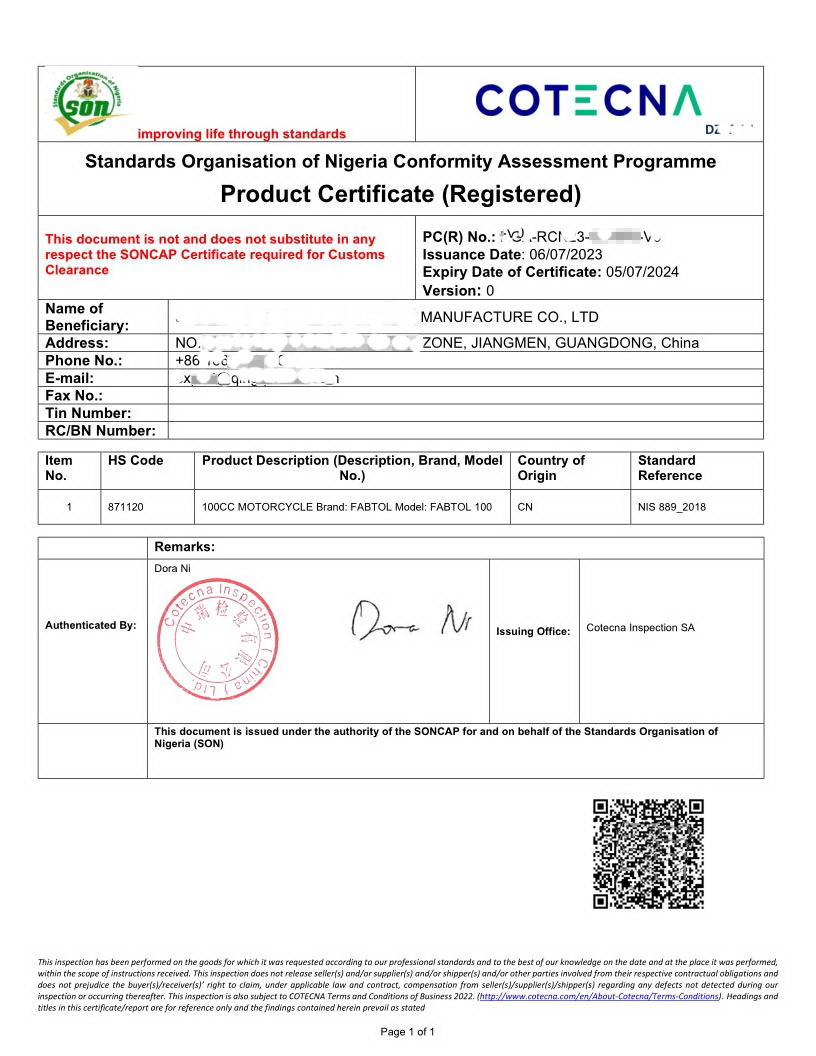 为满足非洲各国对进口清关文件的需要,我司全面代理各类电子跟踪单证,如:BESC、ECTN、BIC/BIETC、URN、FERI、CNCA、BSC等。也代理各类装船前检验,如BV SGS CONTECNA,也代理各类检测认证,如坦桑尼亚TBS,尼日利亚SONCAP,肯尼亚PVOC,乌干达PVOC,沙特SABER,津巴布韦CBCA等。