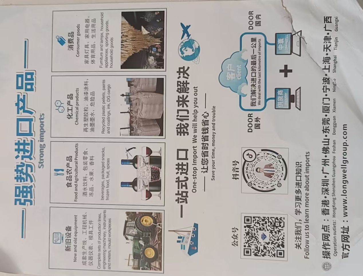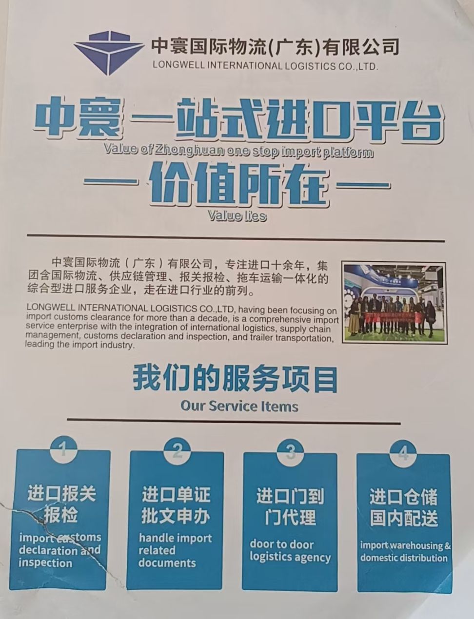 1. 一站式进口服务(报关报检、单证批文、门到门代理、仓储配送);2. 覆盖设备、食品、化工、消费品等多品类进口