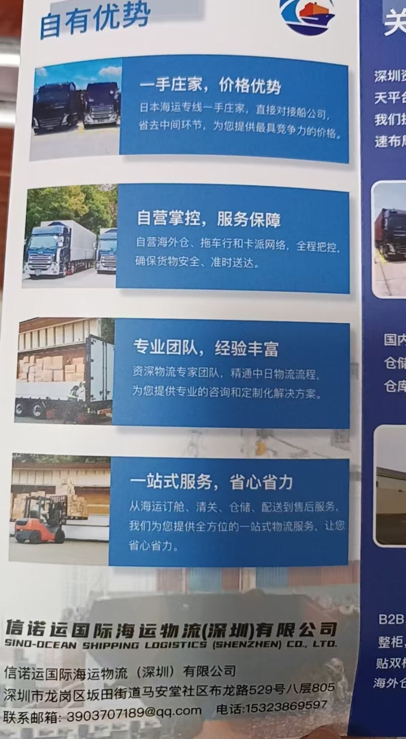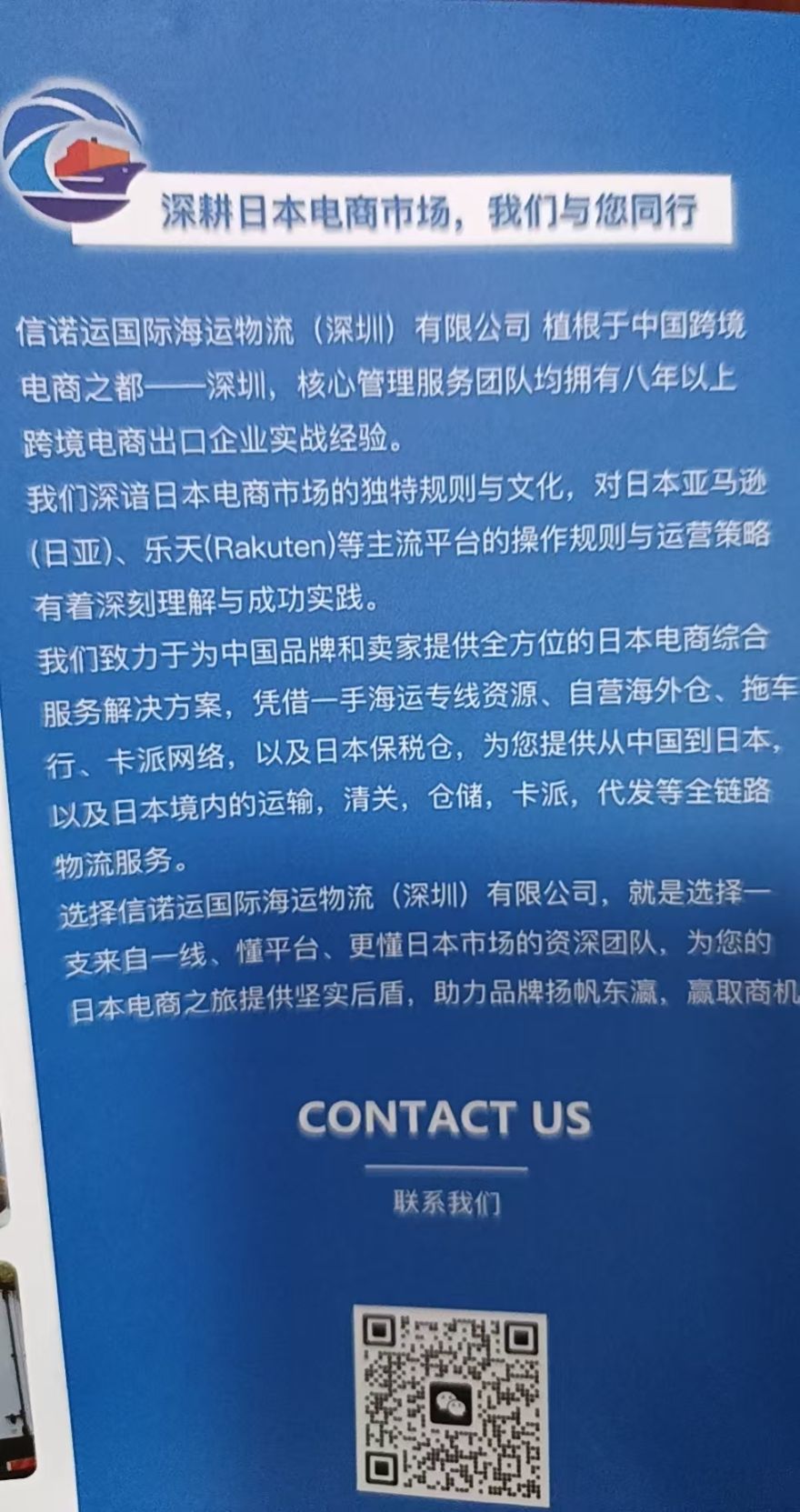 信诺运国际海运物流(深圳)有限公司是一家专做中日跨境的服务商,依托日本母公司深耕日本市场18年的专业通关经验与跨境资源网络,在中国设立的全新海外物流枢纽,我们以深圳为战略支点提供中日物流一站式服务