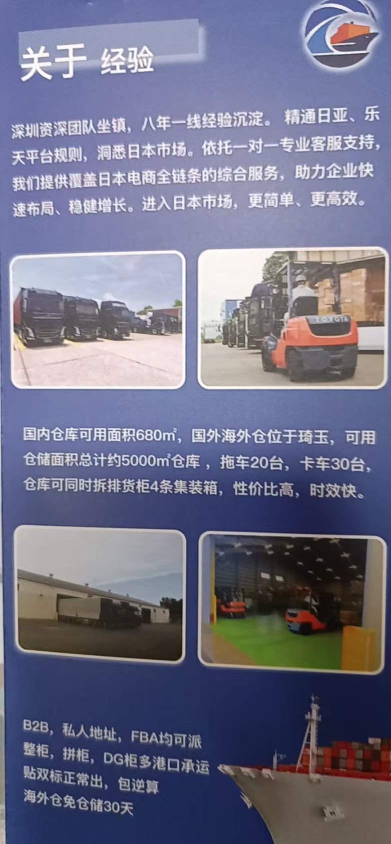 一手庄家价格优势、自营物流网络(含海外仓、拖车行)、专业中日物流团队、深耕日本电商市场(熟悉日亚、乐天平台规则)、具备特种运输(冷藏/冷冻)能力