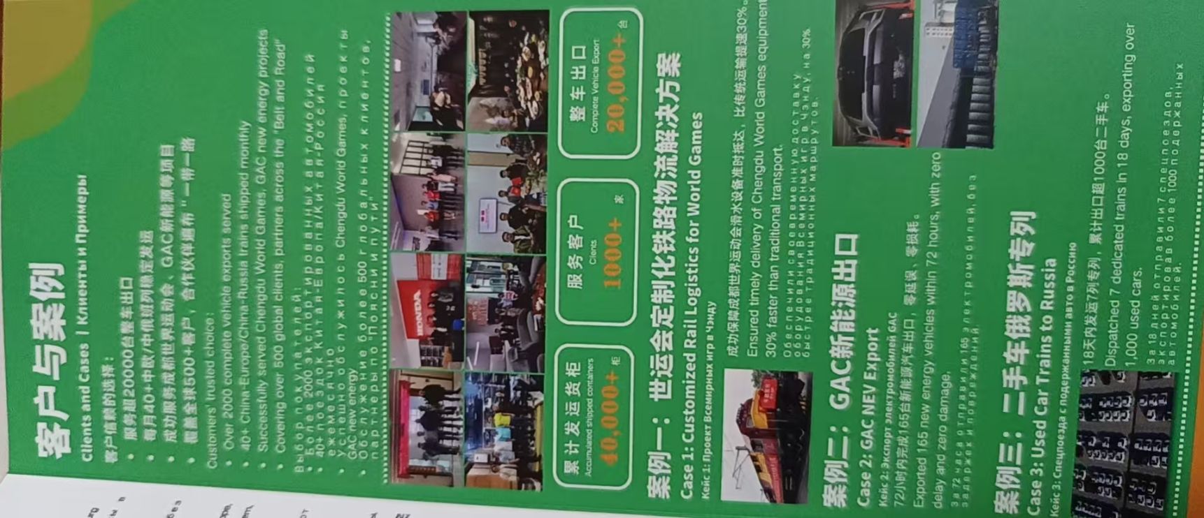 专注中俄/中欧国际物流的平台一级代理商,提供铁路/空运/公路/多式联运全链路服务,拥有自主舱位及30余年报关经验,服务超1000家客户,累计发运货柜40000+,是成都世运会等项目的物流服务商,业务覆盖“一带一路”主要国家。