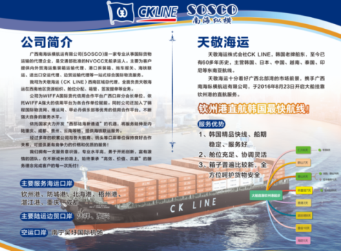 1.公司为韩国天敬海运(CK LINE)西南总代理,全面负责天敬海运在西南地区揽货及推广服务。